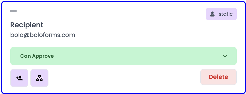 Static Recipients mean that only the selected recipients will receive approval or other kinds of requests. This will be the same for all applicants. \