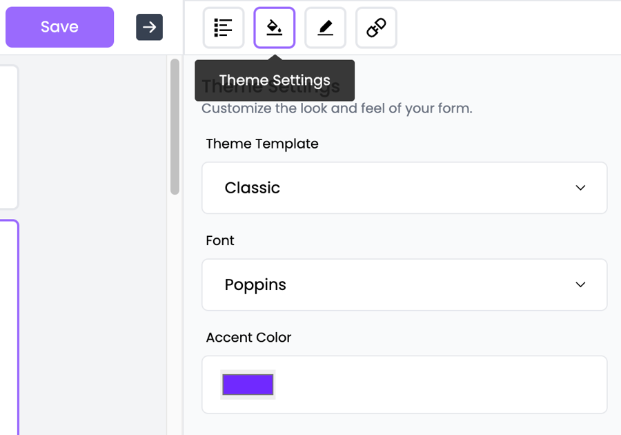 Click on the Theme Settings Button next to Save